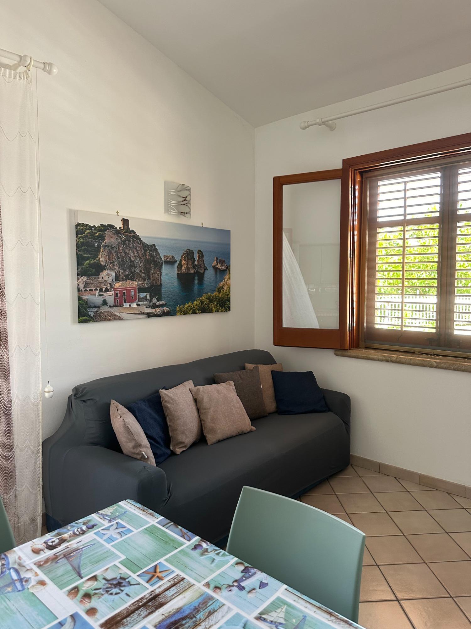 Cocciu D’amuri Home è una casa vacanza immersa nella quiete della campagna siciliana, ideale per chi desidera una pausa rilassante e autentica. Circondata dalla vegetazione tipica della macchia mediterranea, offre un’atmosfera intima e riservata a breve distanza da alcune delle spiagge più belle della costa occidentale, come la Riserva Naturale dello Zingaro, i Faraglioni di Scopello e la Spiaggia di Guidaloca. L’appartamento, ampio e luminoso, si sviluppa su una superficie interna di circa 60 mq. La zona giorno accoglie gli ospiti in un ambiente arioso e confortevole, con soggiorno e cucina a vista completamente attrezzata. Il divano può trasformarsi in un comodo letto matrimoniale, offrendo ulteriore spazio per il pernottamento. La zona notte comprende due camere matrimoniali spaziose e ben illuminate, ciascuna arredata con guardaroba e cassettiera. Il bagno, moderno e funzionale, dispone di doccia e tutti i servizi necessari. All’esterno, un balcone affacciato sul giardino e una terrazza attrezzata invitano a vivere momenti di relax all’aria aperta, tra ulivi e alberi di limone. La struttura dispone inoltre di posto auto privato e accesso indipendente, assicurando piena libertà durante il soggiorno. Alessandro, il proprietario, è un ingegnere edile appassionato della sua terra, pronto ad accogliere gli ospiti con disponibilità e calore, condividendo l’amore per i paesaggi e le tradizioni di questa parte di Sicilia.